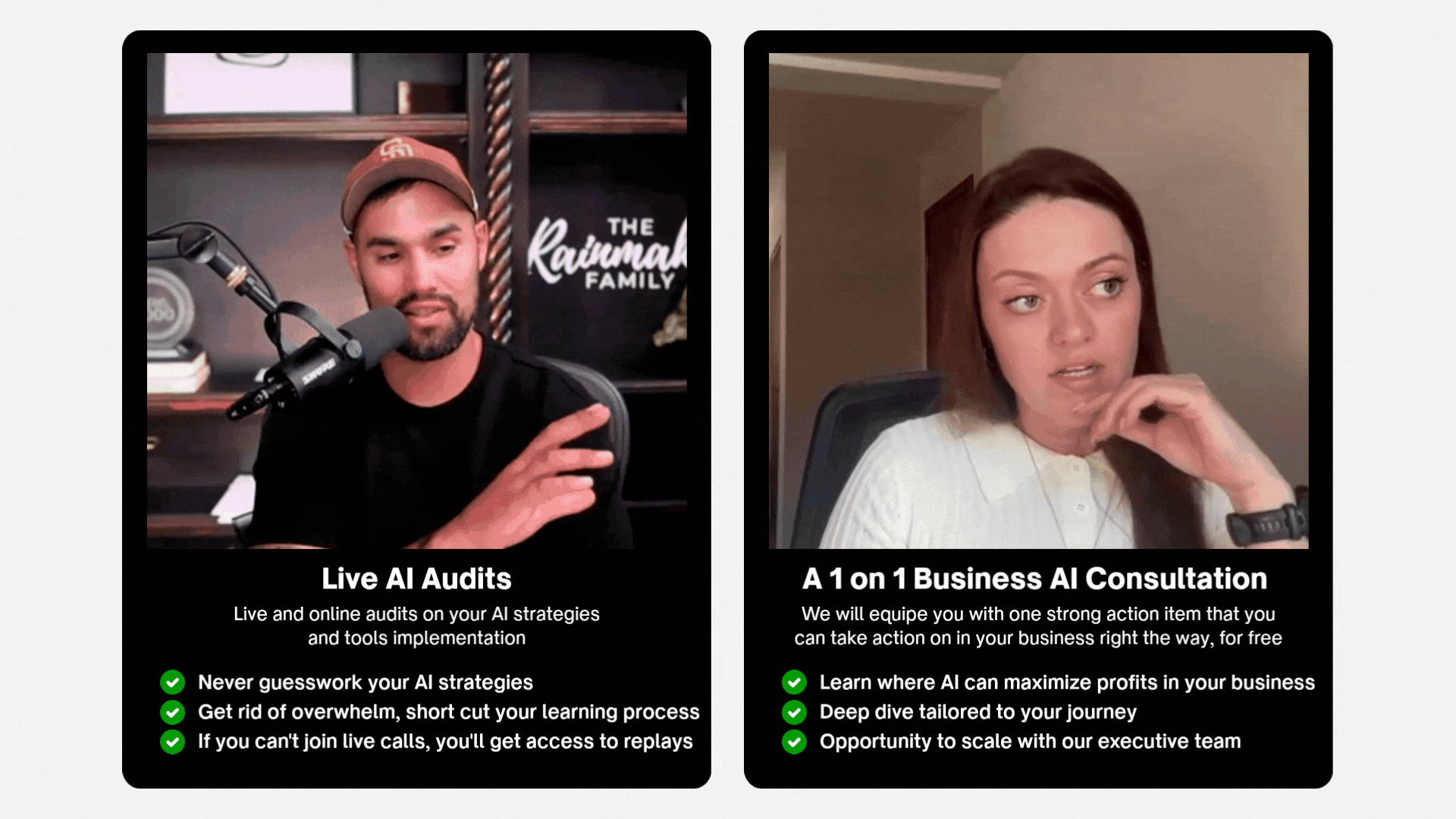 This site is not affiliated with, endorsed by, or sponsored by Meta Platforms, Inc. (formerly Facebook). Meta is a trademark of Meta Platforms, Inc. Any results, savings, or sales figures referenced are specific to Rainmaker Family LLC and its clients. These are not typical and should not be considered guarantees or promises of future success. We are sharing these examples for informational and inspirational purposes only. Your results will vary based on a wide range of factors including your experience, effort, and ability to apply what you learn. We do not claim that you will achieve the same results. Rainmaker Family LLC has over a decade of entrepreneurial experience and has invested heavily in education and mentorship, our outcomes reflect that background. Business success requires significant time, energy, risk, and action. If you’re not ready to take responsibility for your outcomes, we kindly ask that you do not purchase our products, services, or training. Thank you for understanding.