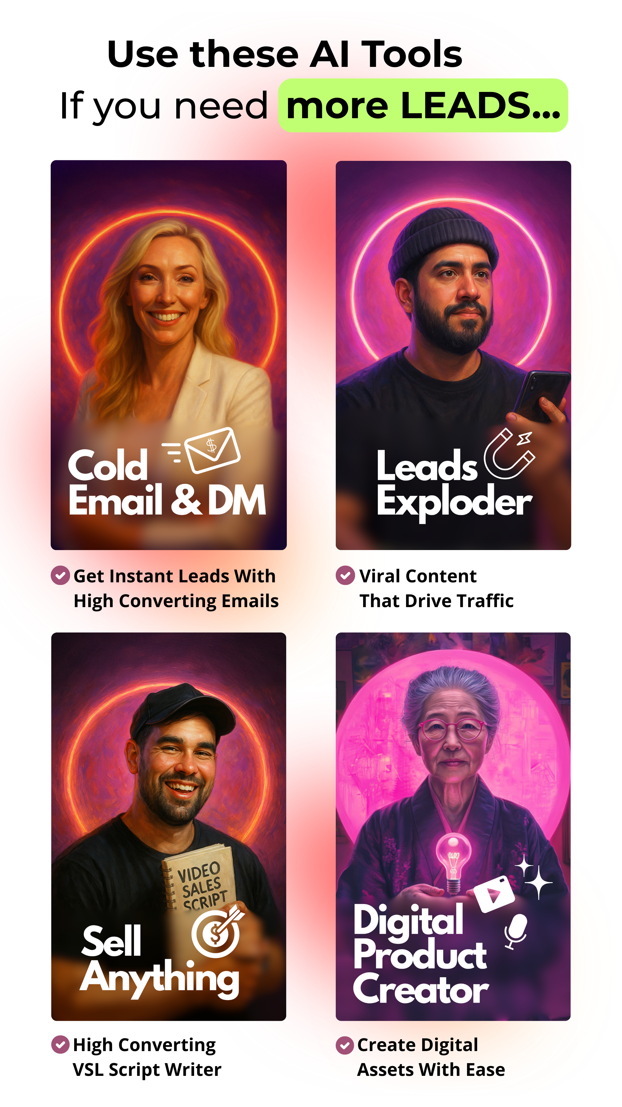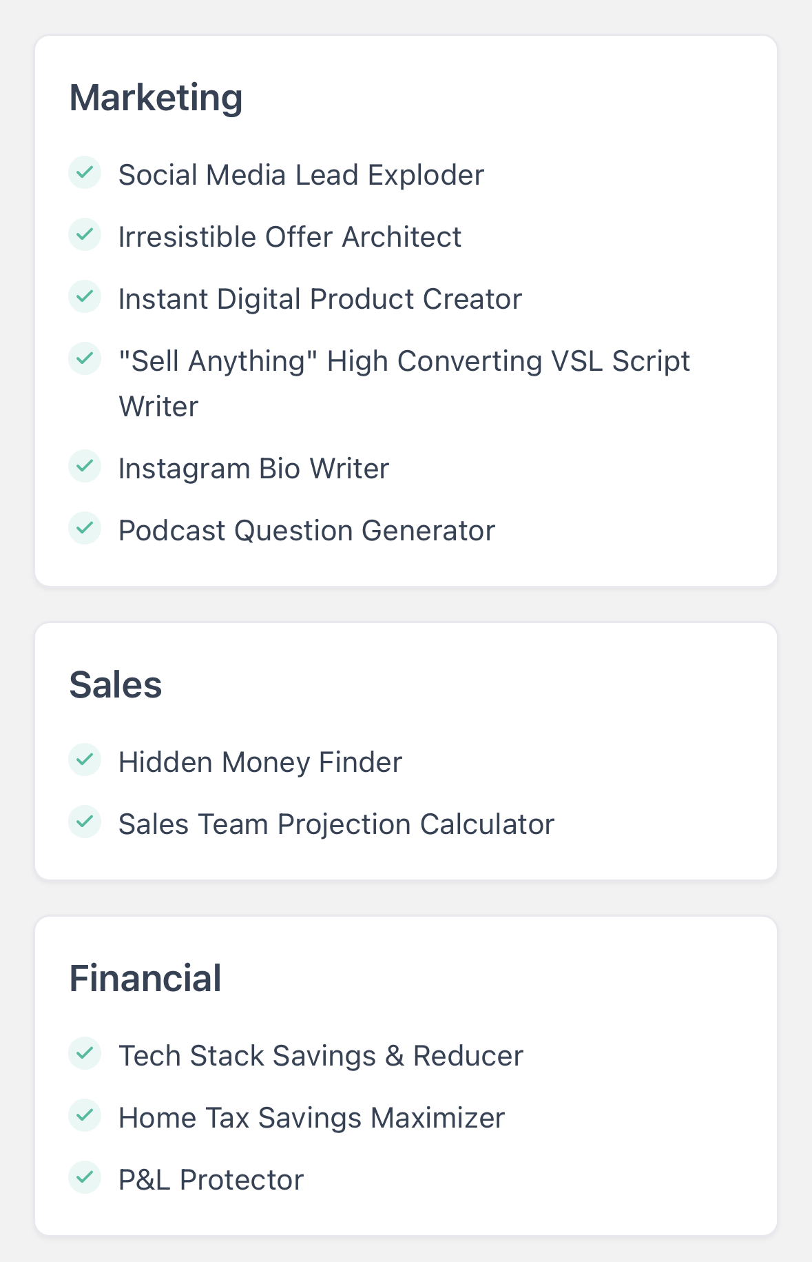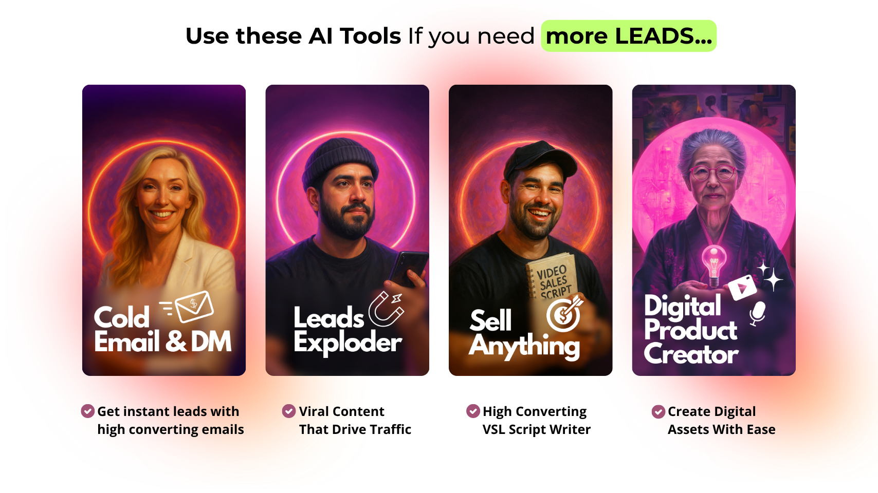 You'll get lifetime access + all future AI Tool updates. We also plan to add to this collection over time. We currently have around 80 tools in the works and as we add more tools, the price of this toolkit will increase. Don't say we didn't warn ya! Grab it while you can at this price.