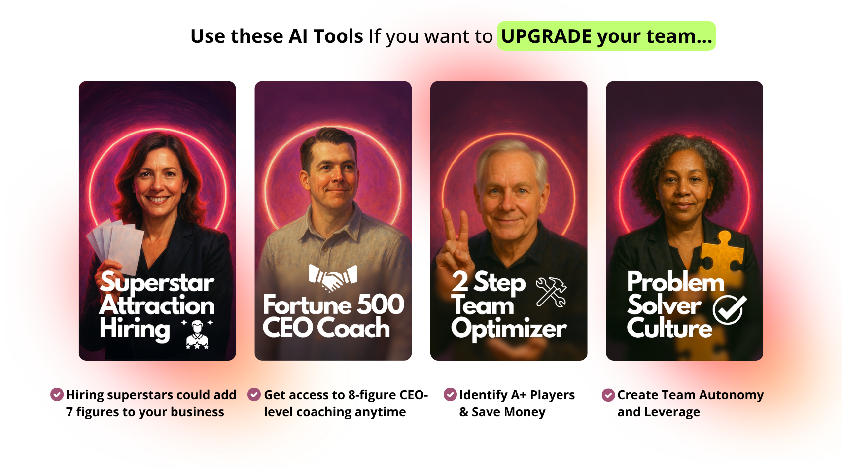 Our 8 Figure C-Suite Team extracted all our years of expertise, and created the very AI Toolkit that you can install into your business now within minutes.