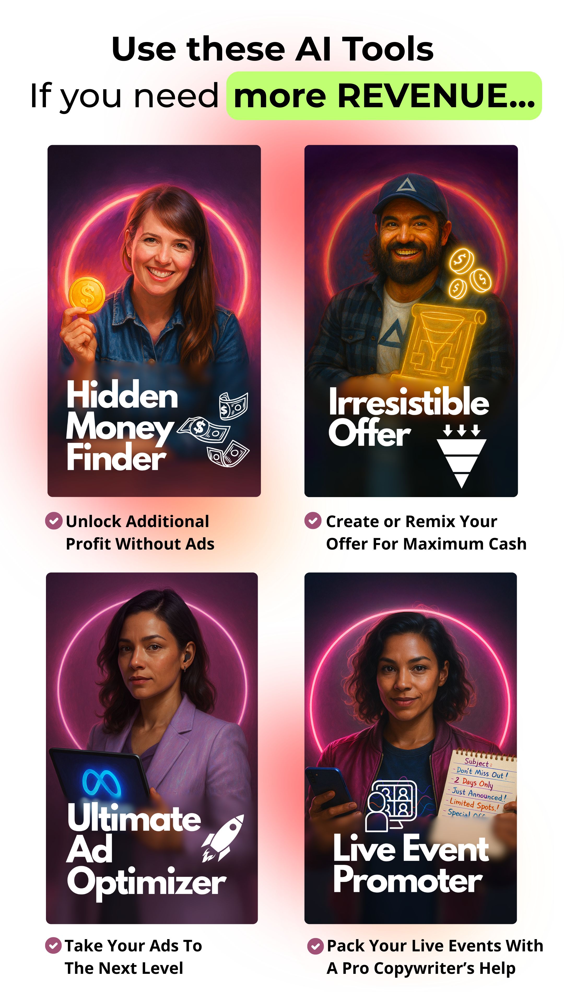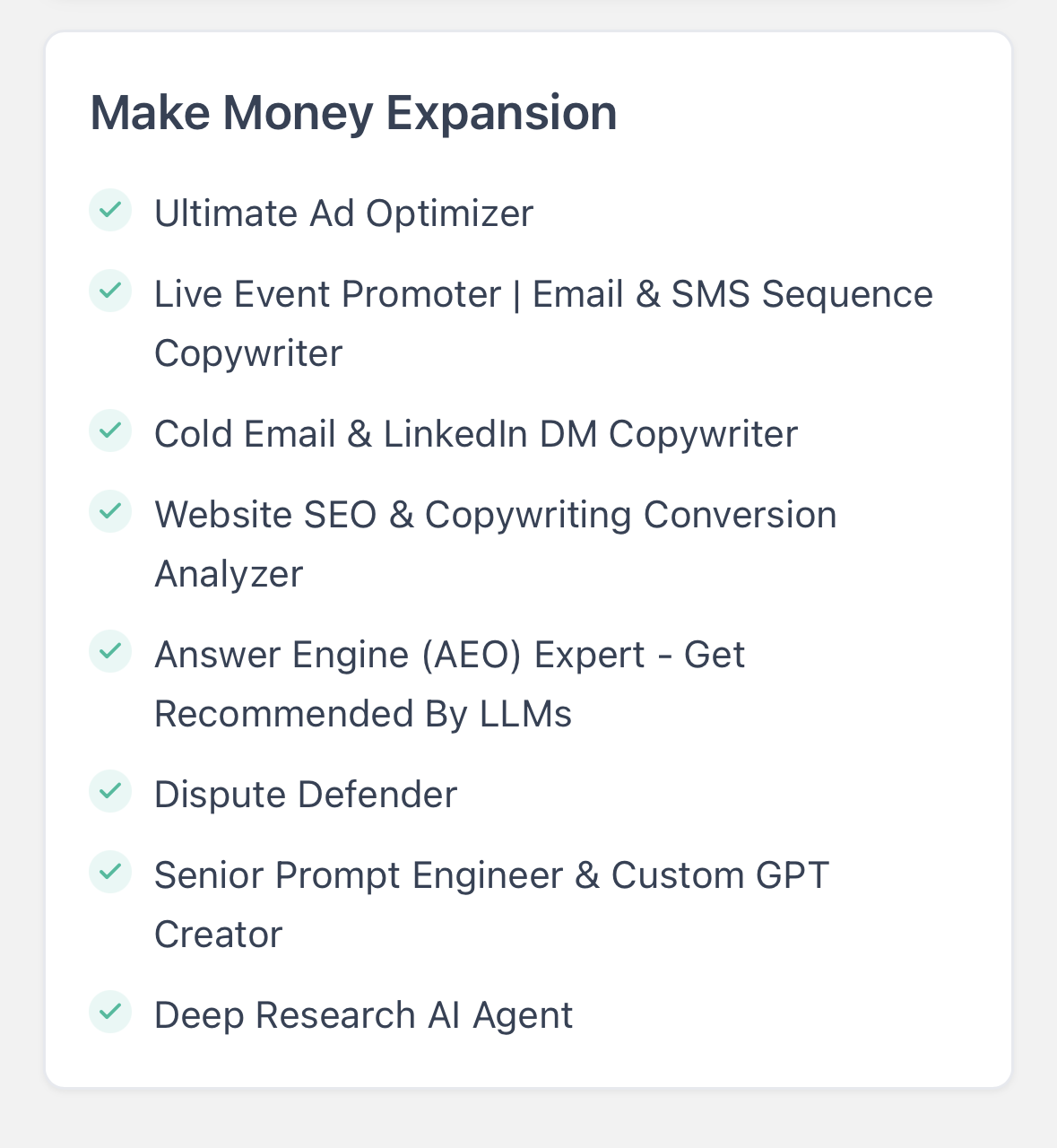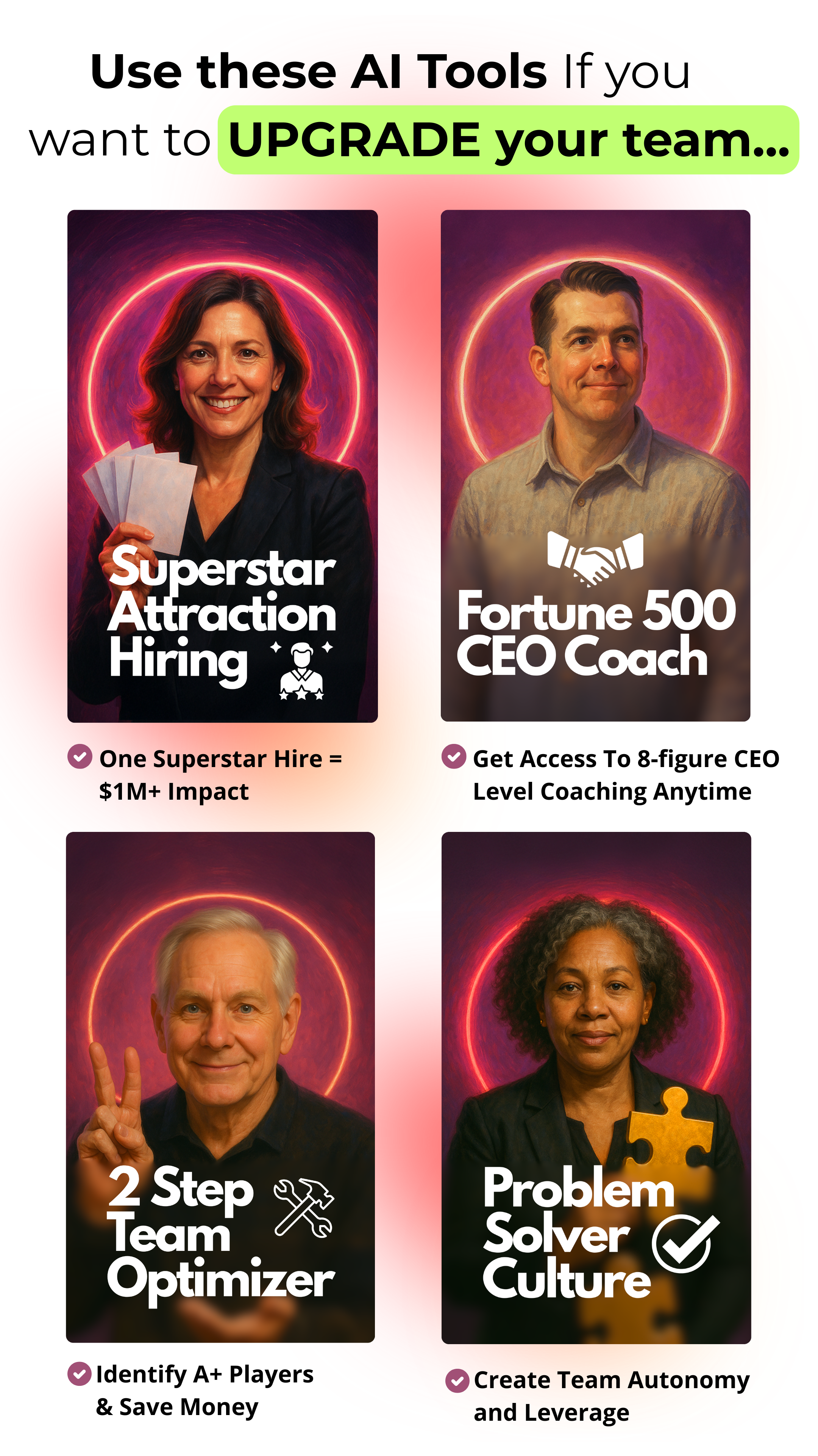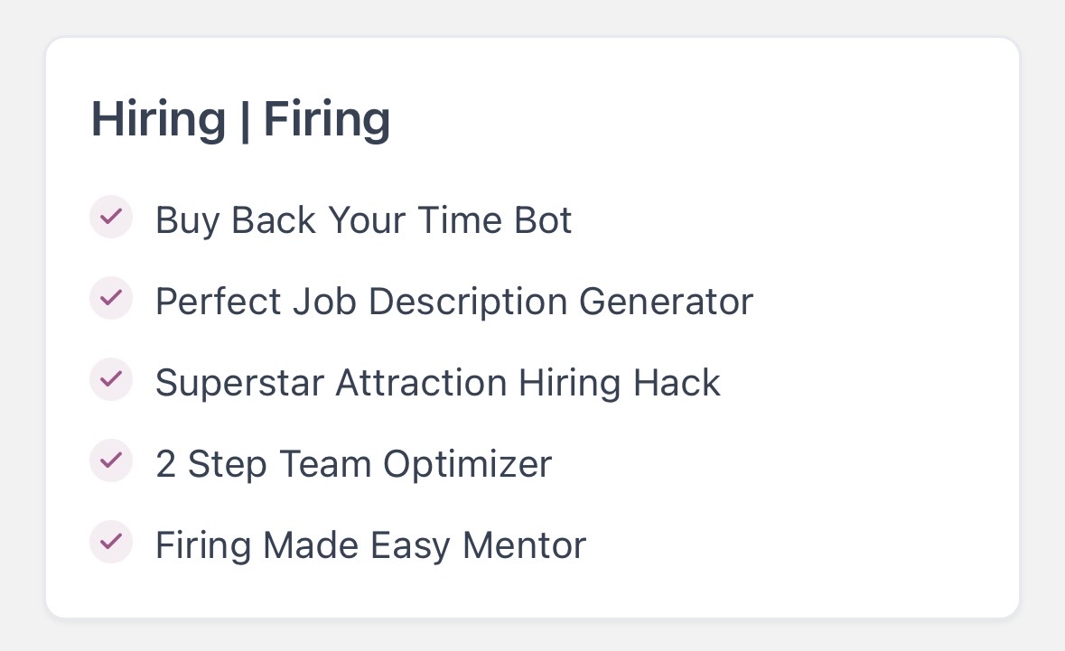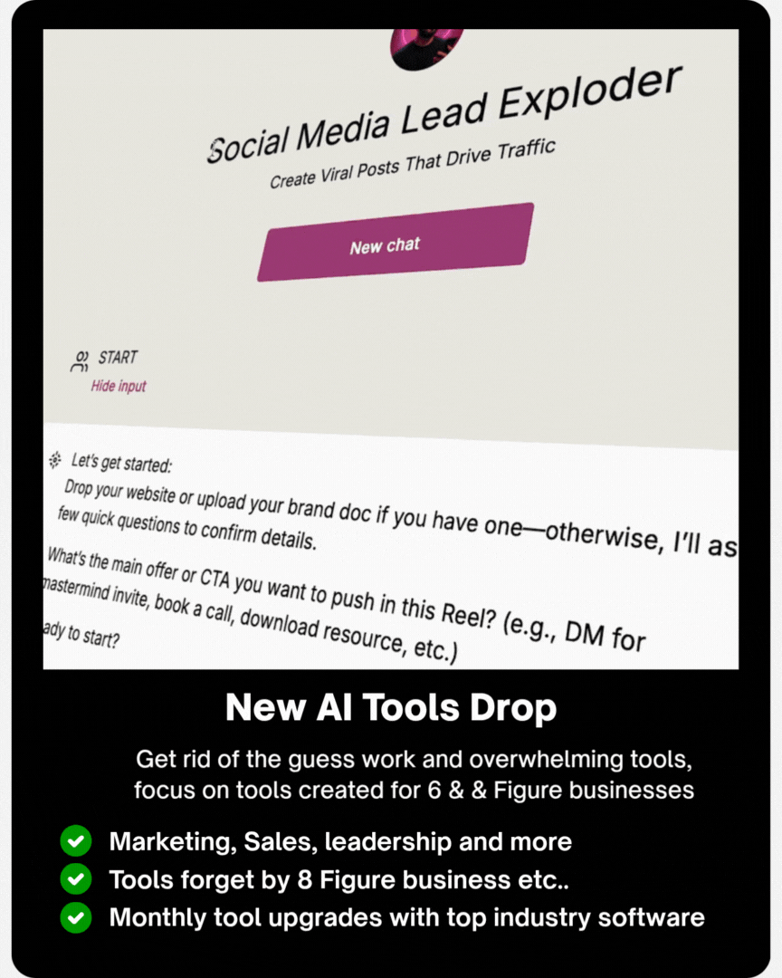 This is not just some cute ChatGPT prompting… Installing our 8 Figure AI Toolkit in your business is like accelerating the hard-won wisdom that was forged in fire within your existing business. Our pain, your gain.